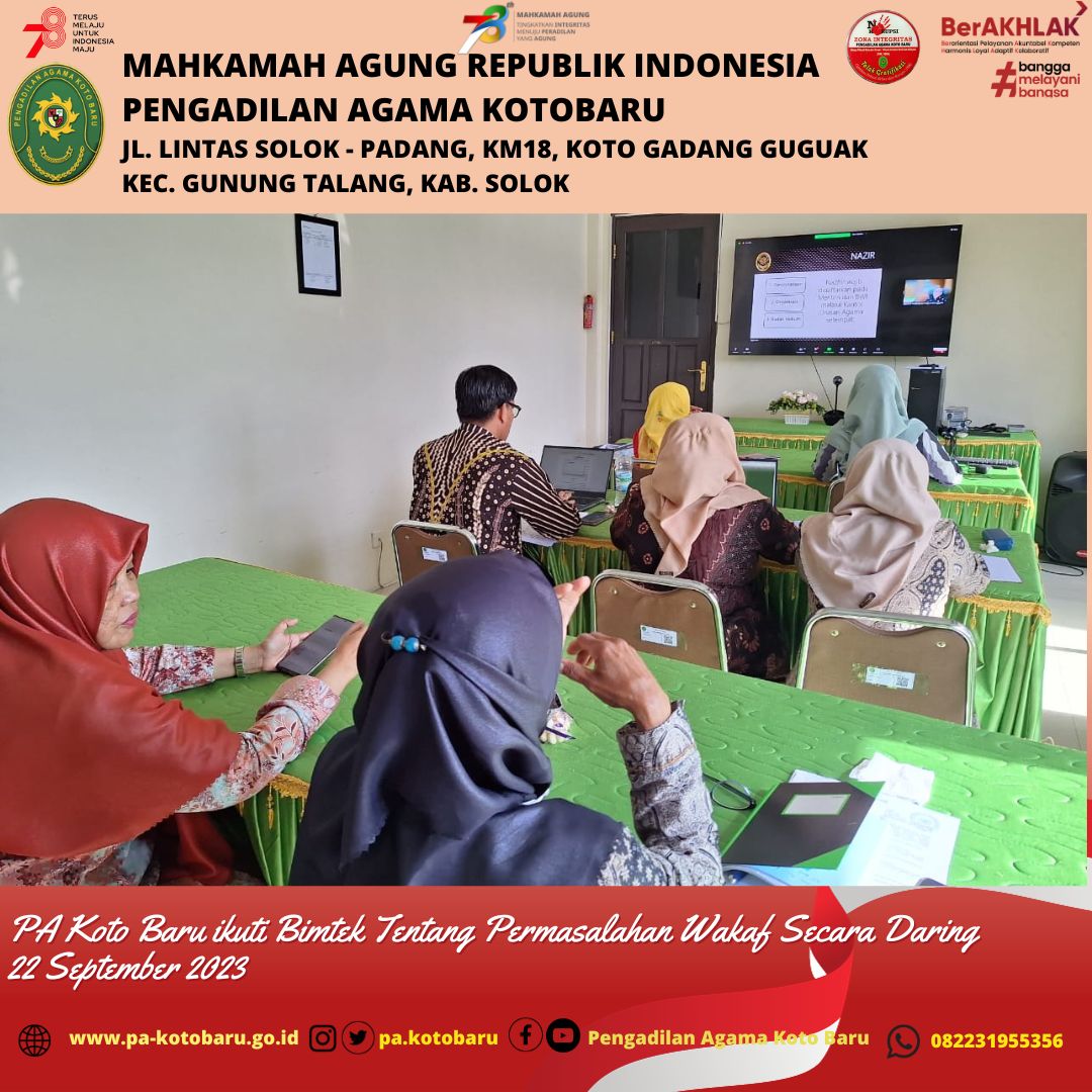 PA Koto Baru ikuti Bimtek Tentang Permasalahan Wakaf Secara Daring | (22/9)