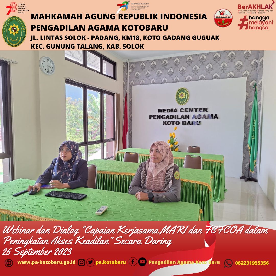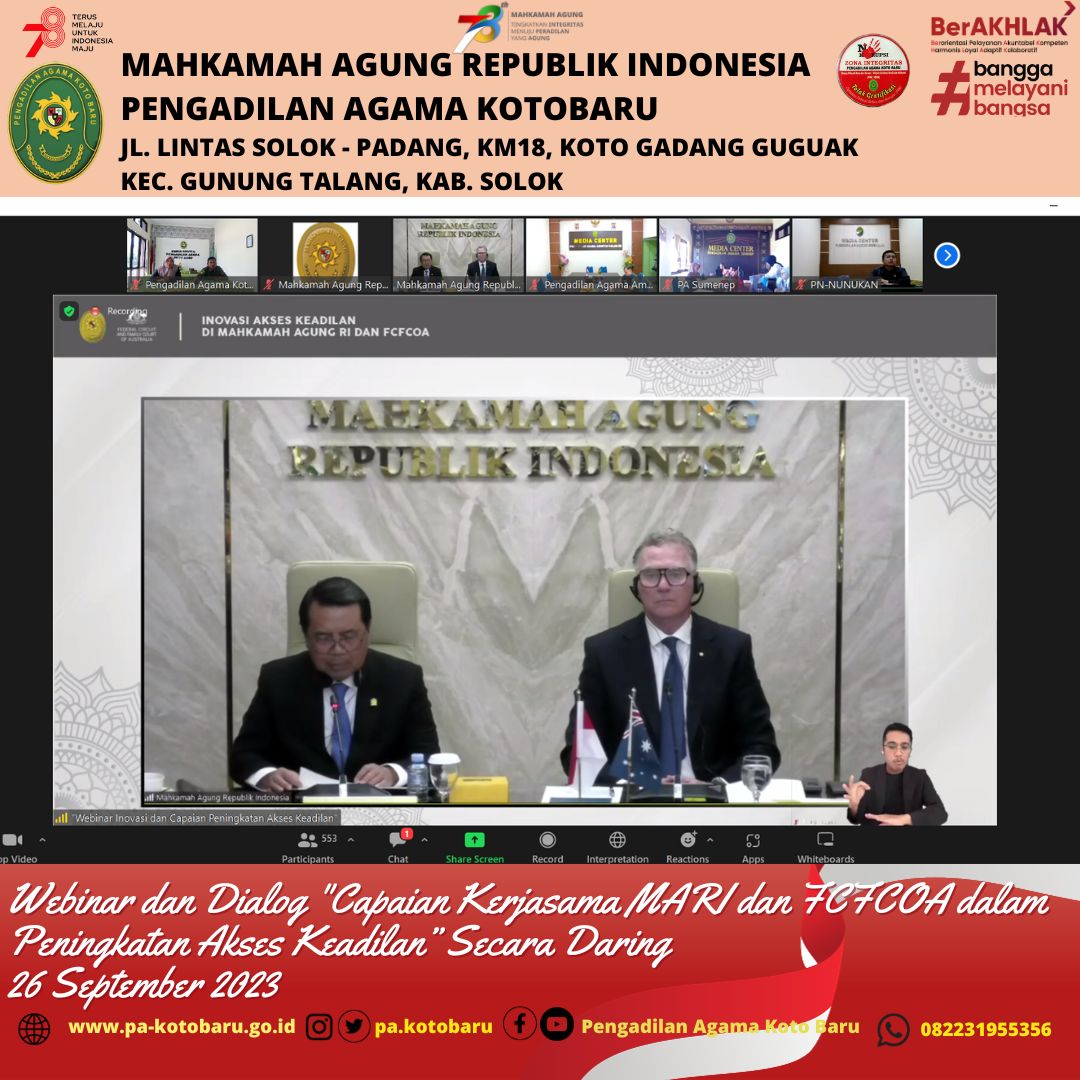 Webinar dan dialog "Capaian Kerjasama MARI dan FCFCOA dalam Peningkatan Akses Keadilan” Secara Daring | (26/9)