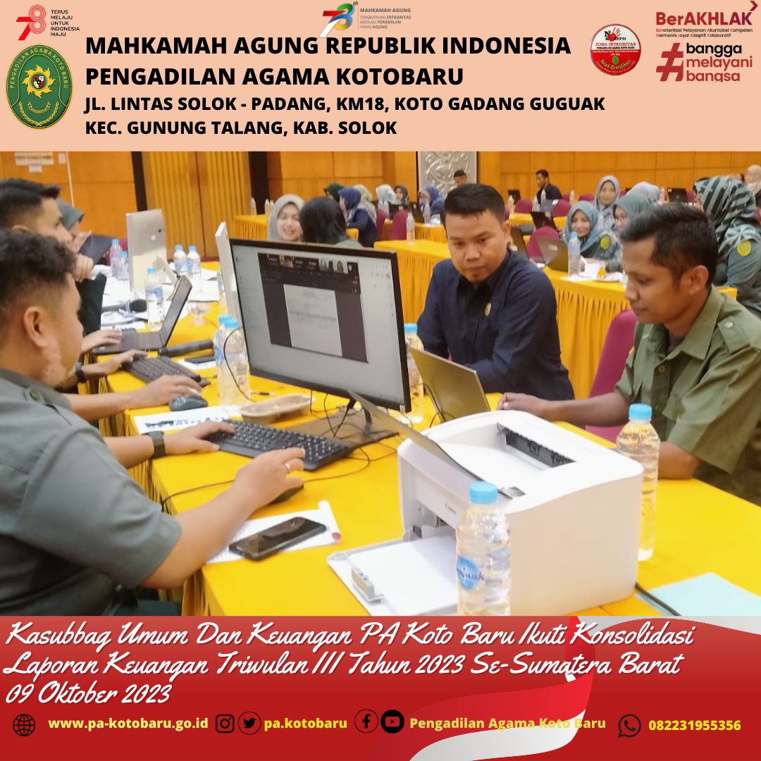 Kasubbag Umum dan Keuangan PA Koto Baru Ikuti Konsolidasi LK Triwulan III Tahun 2023 Se-Wilayah Korwil Sumatera Barat (9/10)