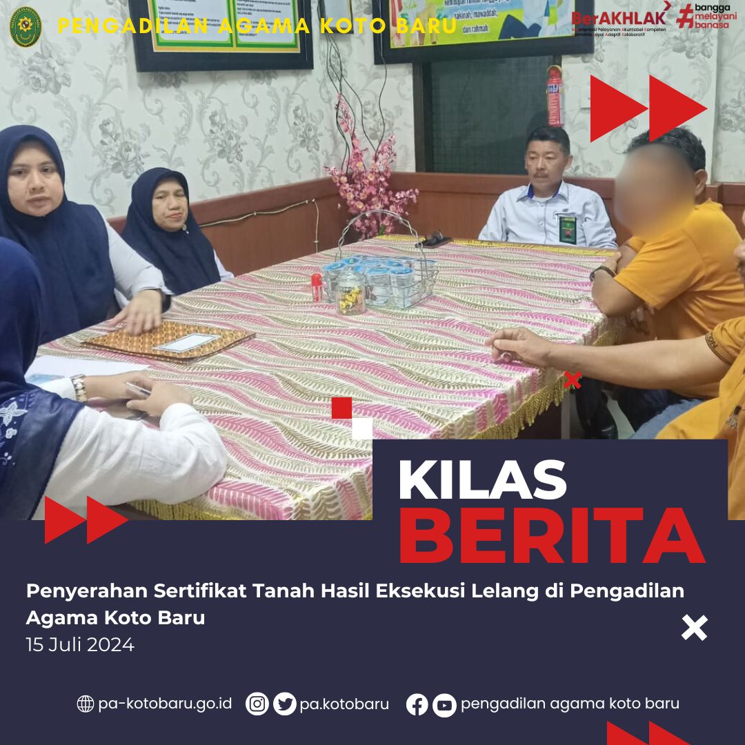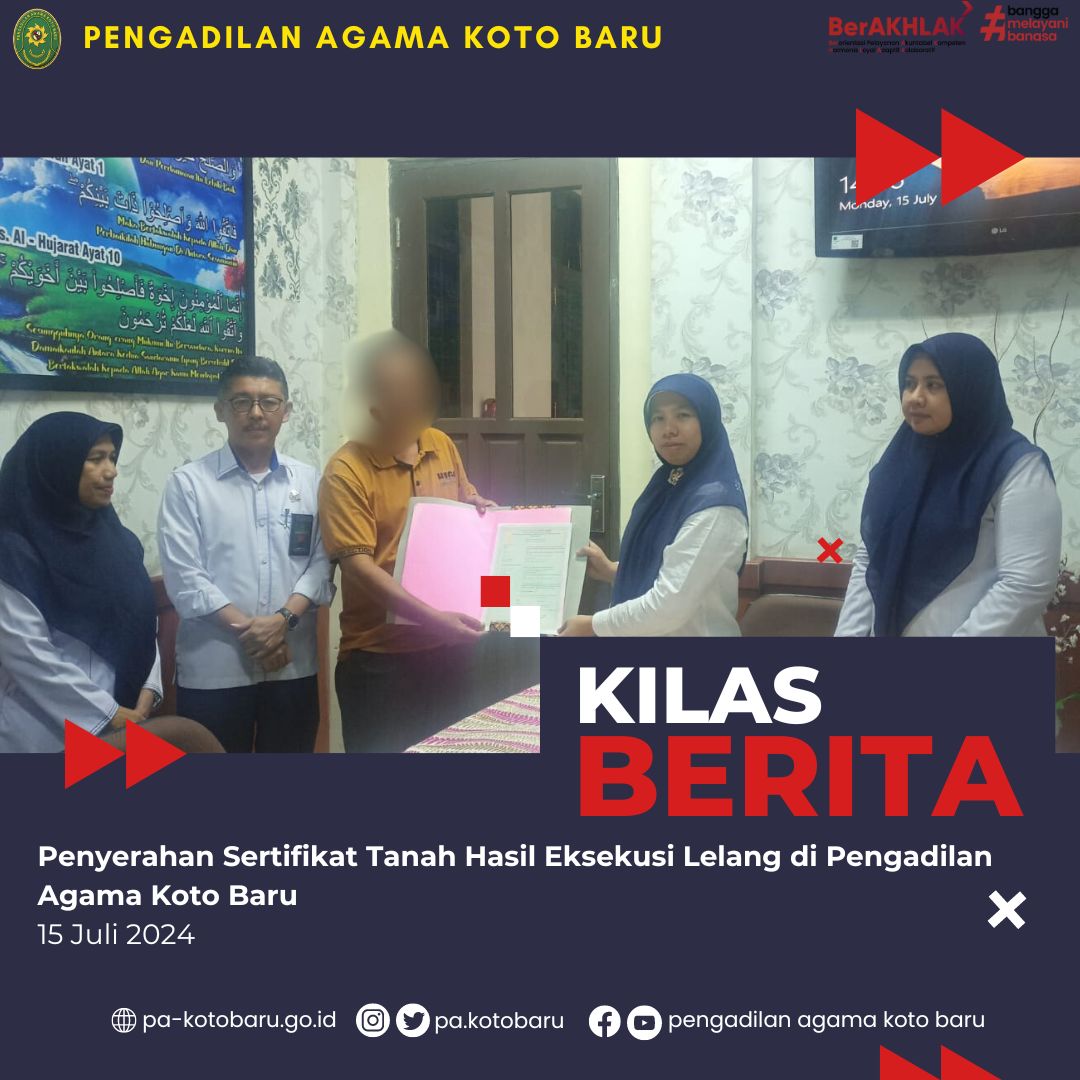 Penyerahan Sertifikat Tanah Hasil Eksekusi Lelang di Pengadilan Agama Koto Baru