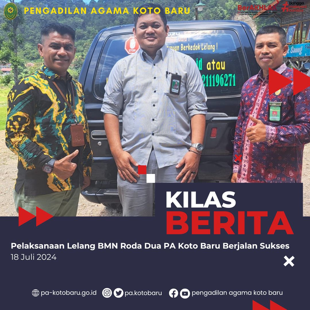 Pelaksanaan Lelang Barang Milik Negara (BMN) yang diselenggarakan oleh Pengadilan Agama Koto Baru berjalan sukses dengan hasil yang memuaskan. Lelang BMN ini merupakan salah satu upaya untuk mengoptimalkan penggunaan aset negara dan mendukung program pemerintah.