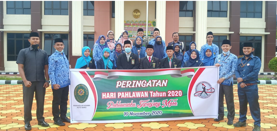 Koto Baru (10 November 2020)- Dalam rangka memperingati Hari Pahlawan ke 75 tahun 2020, Pengadilan Agama Koto Baru menggelar upacara di halaman kantor Pengadilan Agama Koto Baru. Upacara di ikuti oleh Ketua, Hakim, Panitera, Sekretaris serta seluruh pegawai di lingkungan Pengadilan Agama Koto Baru.
