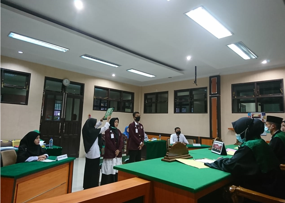 Hari terakhir ini diisi dengan kegiatan ujian praktik sidang semu yang dimbing oleh Ibu Rina Eka Fatma, S.H.I., M.Ag. Kegiatan ini juga dihadiri oleh Dosen Pembimbing dari UIN Imam Bonjol Padang Ibu Dr. Elfia, M.Ag. Melalui praktik sidang semu, diharapkan mahasiswa dapat mengimplementasikan teori yang telah didapatkan dari pembelajaran hukum acara di kampus. Sidang semu merupakan wadah bagi mahasiswa untuk belajar praktik beracara pada proses peradilan khususnya peradilan agama. Sidang semu merupakan simulasi dari proses persidangan yang sebenarnya.