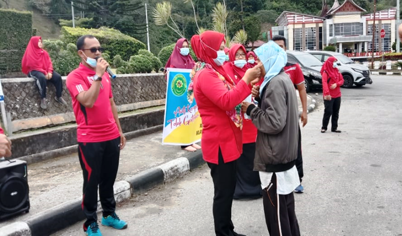 Tampak foto di atas salah seorang pegawai Pengadilan Agama Koto Baru memakaikan Masker kepada warga sekitar yang kebetulan melintas. Bagi warga sekitar tentu merasa senang mendapatkan Masker secara gratis namun yang terpenting adalah masyarakat menjadi sehat, terhindar dari penyebaran virus yang telah mendatangkan banyak korban. Dan yang lebih penting lagi adalah maksud dari kegiatan ini dapat tercapai yaitu terciptanya Pembangunan Zona Integritas di Pengadilan Agama Koto Baru. YEY