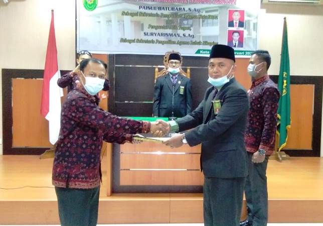 Setelah prosesi pelantikan yang dilaksanakan dengan khidmat, dilanjutkan dengan serah terima jabatan dari Sekretaris Pengadilan Agama Koto Baru yang lama, Bapak Suryarisman, S.Ag., kepada Sekretaris Pengadilan Agama Koto Baru yang baru Bapak Paisul Batubara, S.Ag.