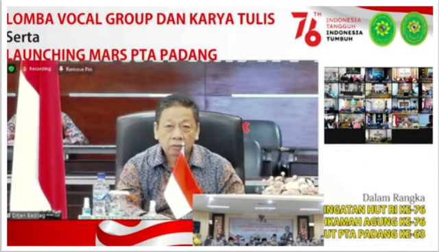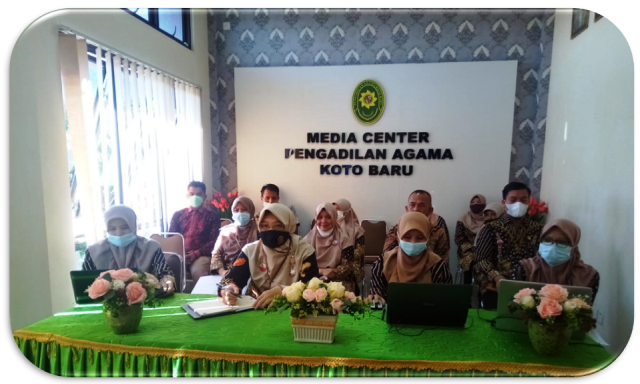 Bertempat di ruang Media Center Pengadilan Agama Koto Baru, tepat pukul 08.00 WIB, Pengadilan Agama Koto Baru mengikuti secara langsung kegiatan “Pembukaan Lomba Vocal Group dan Karya Tulis serta Launching Mars PTA Padang” dalam rangka Peringatan HUT RI ke 76, HUT Mahkamah Agung ke 76, dan HUT PTA Padang ke 63. Lomba karya tulis ilmiah dengan tema mediasi yang sukses dan pengalaman penyintas covid 19 serta lomba lagu vocal group dengan lagu wajib Hymne Mahkamah Agung dan lagu bebas (minang yang mengandung pesan moral). Maksud dan tujuan pelaksanaan kegiatan ini adalah untuk meningkatkan kecintaan terhadap budaya, meningkatkan persatuan dan kesatuan serta meningkatkan ukhwah islamiah sesama keluarga besar PTA Padang. Lomba vokal group akan dilaksanakan pada hari ini secara virtual di satker masing-masing sedangkan lomba karya tulis ilmiah diserahkan kepada panitia paling lambat tanggal 10 Agustus 2021.