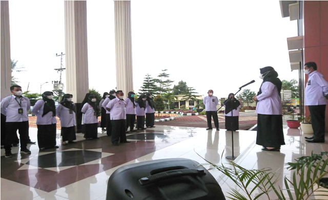 Apel pagi di pimpin oleh ketua Pengadilan agama Koto Baru ibuk Rina Eka Fatma, S.H.I, M.Ag.,. Untuk amanat apel kali ini, Pembina apel mengucapkan terimakasih atas kerja keras pegawai pengadilan agama koto baru karena peringkat sipp untuk minggu ini mendapat peringkat pertama. Beliau juga menyampaikan agar seluruh aparatur Pengadilan agama Koto Baru untuk melakukan perubahan tehadap budaya kerja dan selalu menanamkan integritas didalam diri merupakan salah satu cara untuk mendisiplinkan diri. Disiplin bukan hanya rutinitas pergi dan pulang kantor saja, tapi juga termasuk disiplin dalam menyelesaikan tupoksi sesuai dengan target yang ditetapkan.