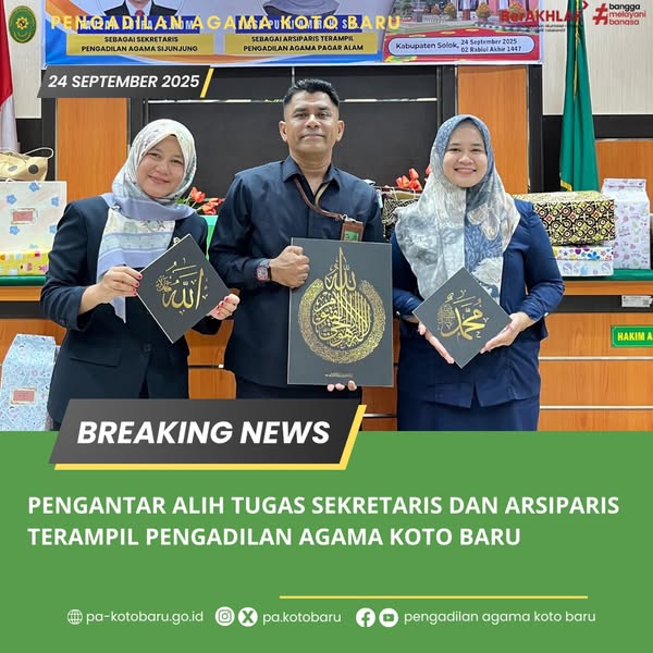Bertempat di Ruang Sidang Pengadilan Agama Koto Baru, telah diadakan acara Pengantar Alih Tugas Sekretaris & Arsiparis Terampil PA Koto Baru
