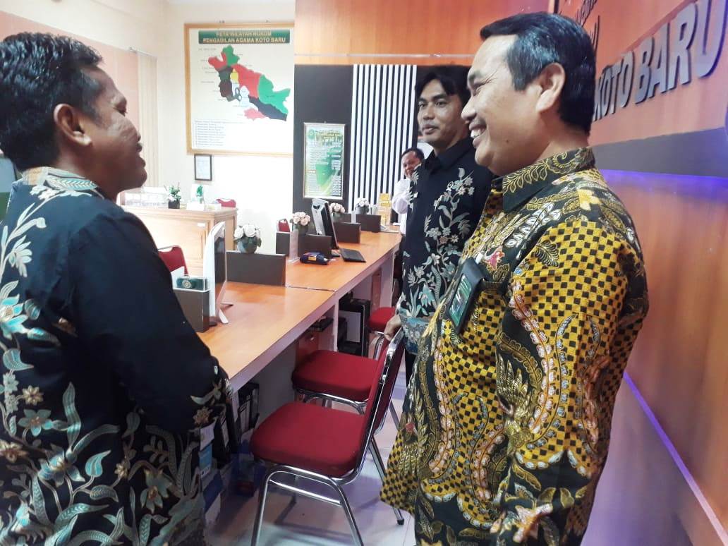 Bapak Wakil Ketua PTA. Padang Dr.H Zulkarnain, S.H,.M.H disambut hangat oleh Bapak Ketua Pengadilan Agama Koto Baru Bapak Muhammad Ismet, S.Ag,.MH beserta semua pegawai baik, Wakil Ketua, Hakim, pejabat Struktural dan Fungsional dan tenaga honorer, setelah itu Bapak Wakil Ketua PTA.Padang, menuju ruangan Kepaniteraan, ruang PTSP, ruang tunggu sidang dan ruang lain yang ada di PA. Koto Baru. Setelah selesai Bapak Wakil Ketua PTA. Padang mengelilingi ruangan-rungan tersebut dilanjutkan dengan mengadakan pertemuan diruang sidang utama PA. Koto Baru dengan di awali dengan laporan Bapak Ketua PA. Koto Baru mengenai kondisi kantor dan kondisi pegawai PA. Koto Baru pada saat ini.