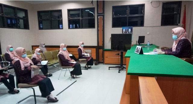 Bertempat di ruang sidang utama Pengadilan Agama Koto Baru kembali dilaksanakan agenda rutin yaitu kegiatan monitoring dan evaluasi kinerja bulan Juli 2021. Kegiatan yang dimulai pada pukul 15.00 WIB ini langsung dipimpin oleh Ketua Pengadilan Agama Koto Baru Rina Eka Fatma, S.H.I., M.Ag., serta dihadiri oleh Hakim dan seluruh pegawai Pengadilan Agama Koto Baru.