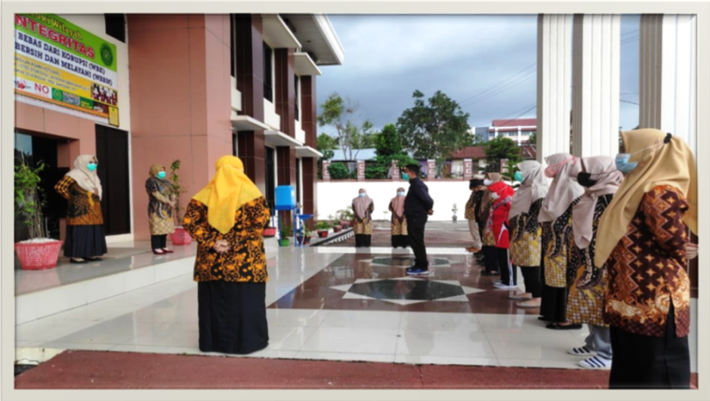Bertempat di depan kantor Pengadilan Agama Koto Baru, seluruh aparatur Pengadilan Agama Koto Baru melaksanakan kegiatan apel sore rutin dilakukan setiap minggunya. Apel dipimpin oleh Hakim Pengadilan Agama Koto Baru Ibu Alimah Aini, S.H.I dan komandan apel Rendi Jopi. Dalam kondisi mendung dan gerimis, tidak menjadi penghalang bagi keluarga besar Pengadilan Agama Koto Baru untuk tetap melaksanakan kegiatan ini. Untuk amanat kali ini, Pembina apel menyampaikan tentang pembangunan zona integritas yang telah dibangun di Pengadilan Agama Koto Baru agar terus ditumbuhkan dengan rasa memiliki yang tinggi terhadap kantor yang menjadi rumah kedua bagi kita warga Pengadilan Agama Koto Baru. Kemudian untuk hasil yang maksimal, hendaknya segala kebijakan yang telah diambil pimpinan untuk kepentingan dan kemajuan satker dilaksanakan dengan baik. Ini sebagai bentuk komitmen kita bersama, tidak hanya pimpinan akan tetapi seluruh keluarga besar Pengadilan Agama Koto Baru.