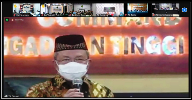 Ketua, Wakil, Hakim serta pejabat kepaniteraan mengikuti secara virtual melalui aplikasi Zoom, kegiatan bimbingan teknis yustisial yang diadakan oleh Pengadilan Tinggi Agama Padang. Kegiatan dengan tema “Sita dan Eksekusi” ini diadakan dalam rangka pengembangan kompetensi teknis yustisial aparat peradilan agama di Lingkungan Pengadilan Tinggi Agama Padang. Pembinaan ini disampaikan oleh Yang Mulia Ketua Kamar Agama Mahkamah Agung Republik Indonesia Dr. H. Amran Suadi, S.H., M.H., M.M.