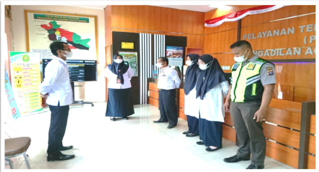 Kepada petugas agar selalu menjaga kenyamanan pengunjung selama berada di PTSP dan lingkungan Pengadilan Agama Koto Baru, serta memantau penerapan protokoler kesehatan, dan diharapkan memperhatikan kerapian dan keserasian berseragam. Khusus kepada petugas keamanan agar tetap waspada menjaga stabilitas dan kenyamanan kantor, dengan menerapkan SOP (Standar Operasional Prosedur) penerimaan tamu dan keamanan.