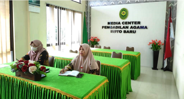 Bertempat di ruang media center, Ketua (Rina Eka Fatma, S.H.I., M.Ag) dan Panitera (Dra. Nila Novita, S.H) Pengadilan Agama Koto Baru mengikuti kegiatan Sosialisasi Sistem Penilaian Prestasi Kerja Individu bagi Panitera Pengadilan Agama/Mahkamah Syar’iyah yang diselenggarakan oleh Ditjen Badan Peradilan Agama Mahkamah Agung Republik Indonesia melalui aplikasi zoom meting yang diikuti oleh Ketua/Wakil Ketua dan Panitera Pengadilan Agama/Mahkamah Syar’iyah se Indonesia.