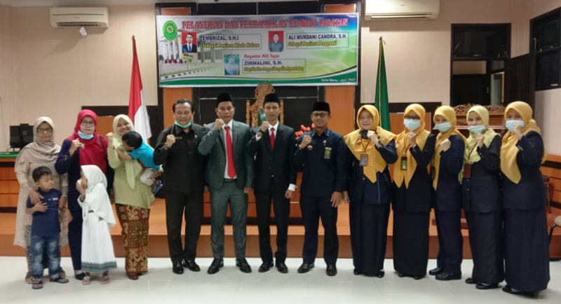 Bertepatan dengan tanggal 4 Dzulqaidah 1442 Hujriah bertempat di ruang sidang utama Pengadilan Agama Koto Baru, Ketua Pengadilan Agama Koto Baru Bapak Indra Fitriadi, S.Ag., M.Ag., mengambil sumpah jabatan dan melantik Panitera Pengganti atas nama Ali Murdani Candra, S.H., (jabatan sebelumnya Jurusita Pengadilan Agama Muaro Labuah) dan Panitera Muda Hukum atas nama Embrizal, S.H.I., yang sebelumnya menjabat sebagai Panitera Pengganti Pengadilan Agama Koto Baru. Acara diawali dengan menyanyikan lagu kebangsaan Indonesia Raya, Hymne Mahkamah Agung dan pembacaan surat keputusan Dirjen Badilag terkait pengangkatan Panitera Pengganti dan Panitera Muda Hukum Pengadilan Agama Koto Baru.