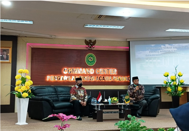 Bertempat di Ruang Command Center Pengadilan Tinggi Agama Padang, Ketua Pengadilan Agama Koto Baru Rina Eka Fatma, S.H.I., M.Ag mengikuti kegiatan pembinaan teknis yustisial bersama seluruh Ketua Pengadilan Agama Se Sumatera Barat dengan Narasumber Yang Mulia Ketua Kamar Agama Mahkamah Agung RI Dr. H. Amran Suadi, S.H., M.H., M.M. Pelaksanaan kegiatan ini juga dihadiri oleh asisten Hakim Agung YM Dr. Mardi Chandra, S.Ag., M.Ag., M.H., Ketua PTA Padang dan jajarannya, dan Ketua PTA Medan.