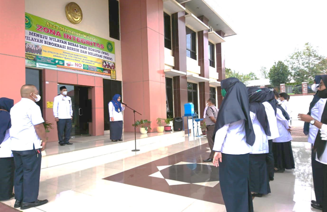 Pengadilan agama Koto Baru melaksanakan apel pagi yang diikuti oleh Ketua, Wakil Ketua, Hakim, Panitera,  Pejabat Struktural dan Fungsional, Staf serta tenaga honorer dan PPNPN Pengadilan agama Koto Baru. Apel turut diramaikan oleh siswa magang dari SMK Kota Solok.