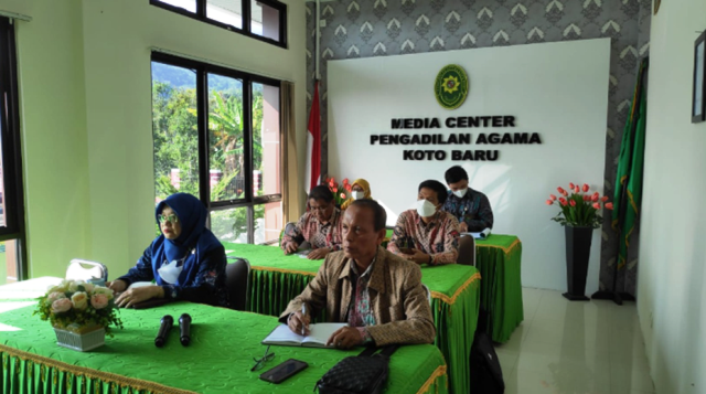 Ketua dan Para Hakim Pengadilan Agama Koto Baru mengikuti kegiatan “Bimbingan Teknis Kompetensi Tenaga Teknis di Lingkungan Peradilan Agama Berbasis Online Zona 1” secara virtual melalui aplikasi Zoom di ruang Media Center Pengadilan Agama Koto Baru. Ikut hadir dalam kegiatan zoom ini Tim Pembina dan Pengawasan PTA Padang. Kegiatan pembinaan ini diselenggarakan Direktorat Jendral Badan Peradilan Agama Mahkamah Agung dalam rangka meningkatkan kualitas dan kapasitas tenaga teknis di lingkungan peradilan agama.