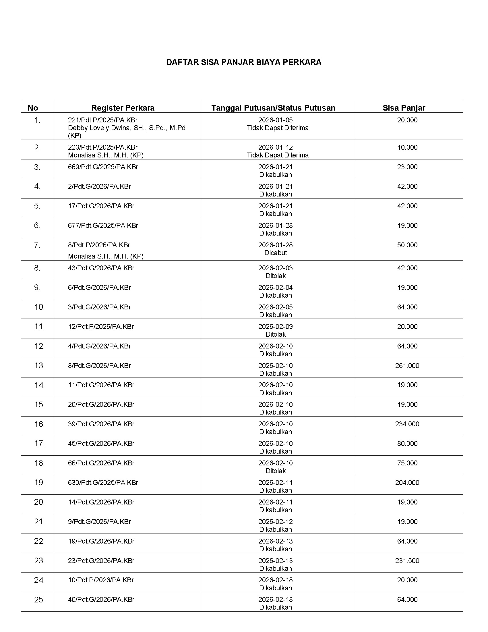 SURAT PEMBERITAHUAN PENGEMBALIAN SISA PANJAR BIAYA PERKARA