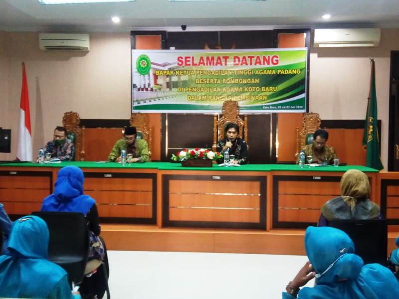 Pembinaan ini dilaksanakan pada bidang Kesekretaritan dan Kepaniteraan serta proses penerimaan dan pelayanan perkara di PTSP serta kebersihan lingkungan kantor PA. Koto Baru. Di akhir acara pembinaan oleh Bapak Ketua PTA. Padang bersama rombongan ditutup dengan penyampain hasil pembinaan dengan beberapa temuan yang harus diperbaki untuk ke depannya oleh PA. Koto Baru, Acara ini berlangsung di ruang sidang utama PA. Koto Baru, acara ini dibuka dengan kata pendahuluan oleh Bapak Ketua PA. Koto Baru sekaligus sebagai moderator dalam pertemuan ini.