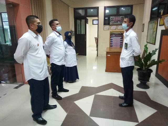 Bertempat di depan ruang sidang utama Pengadilan Agama Koto Baru, Panitera Muda Hukum Pengadilan Agama Koto Baru Bapak Embrizal, S.H.I memberikan briefing kepada seluruh petugas sidang dan membahas tentang tugas dan kedisiplinan petugas sidang, yang pertama tentag penggunaan masker dan id card bagi pengunjung sidang, agar menjadi perhatian, yang kedua mengintruksikan ke pengunjung sidang untuk menonaktifkan hendphon selama persidangan berlangsung atau minimal menonaktifkan suaranya, kemudian yang ketiga tentang barang bawaan yang dibawa pengunjung sidang agar dipastikan tidak membawa barang atau benda apapun yang terkait dengan kebutuhan persidangan.
