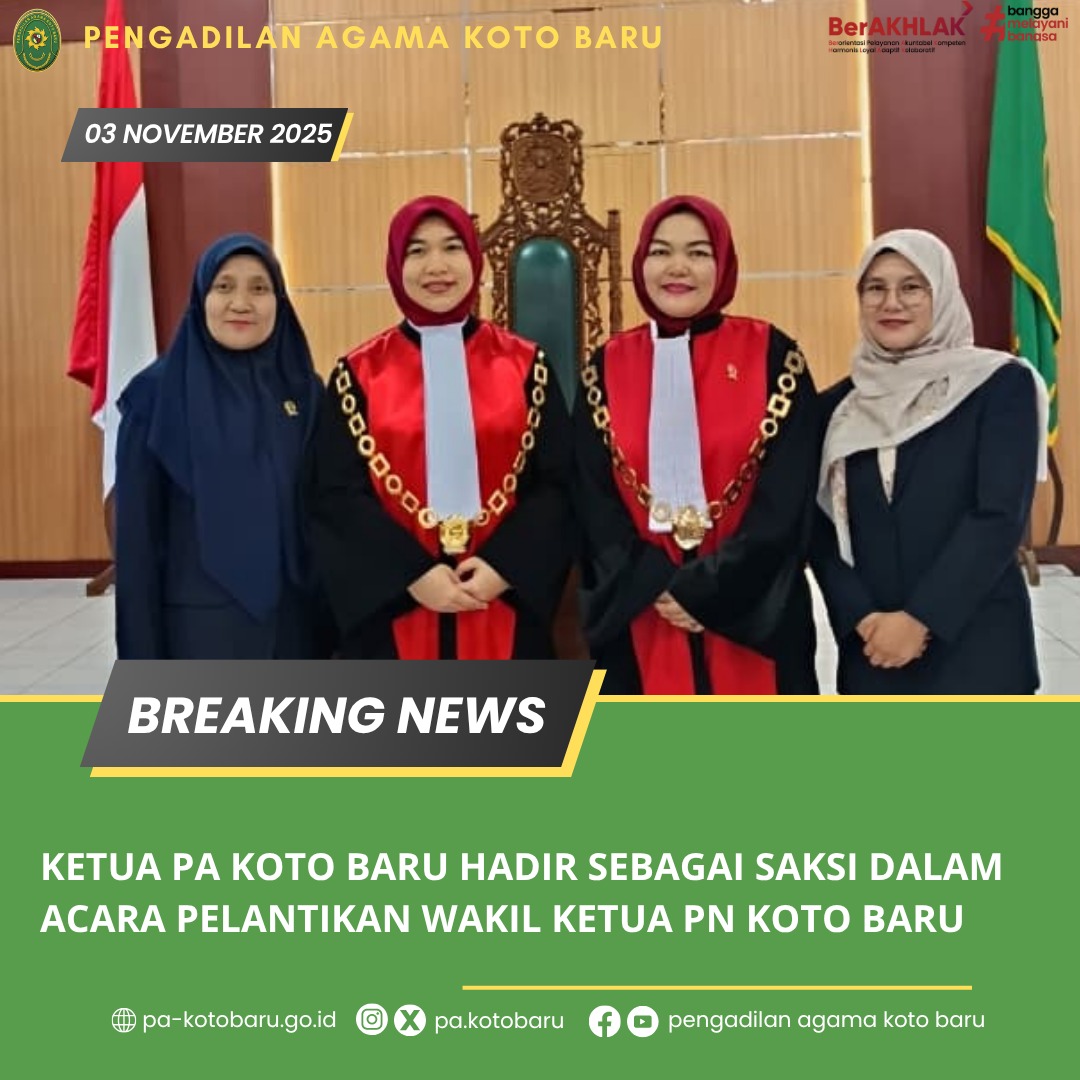 Ketua Pengadilan Agama Koto Baru, Nidaul Husni, S.H.I., M.H., menghadiri sekaligus menjadi saksi dalam acara Pengambilan Sumpah Jabatan dan Pelantikan Nartilona, S.H., M.H. sebagai Wakil Ketua Pengadilan Negeri Koto Baru.