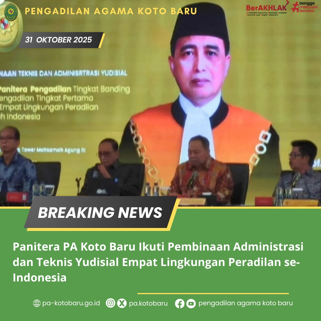Melalui kegiatan ini, diharapkan para panitera di seluruh Indonesia, termasuk Panitera Pengadilan Agama Koto Baru, dapat semakin memperkuat komitmen dalam memberikan pelayanan hukum yang profesional, transparan, dan berintegritas kepada masyarakat.